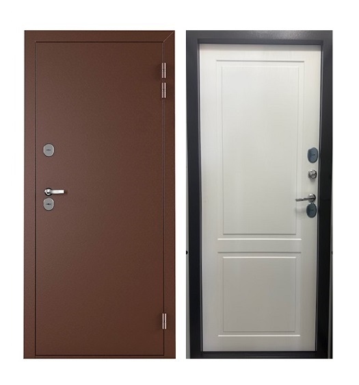 Дверь металлическая Норд серии "Терморазрыв" оптимальное решение для установки в местах, подвергающихся воздействию природных температур. Данная конструкция двери надежно предотвращает промерзание двери при температуре на улице до минус 30 С. Дверь с терморазрывом имеет в районе притвора уникальную 2х камерную конструкцию, состоящую из холодной и теплой зон, которые разграничены между собой двойным слоем уплотнителя, пластиковым элементом в полотне и перфорацией в коробе. Дверь Норд комплектуется двумя сувальдными замками Промет 30.11 и Промет 30.01 четвертого класса взломостойкости, а также алюминиевой дверной ручкой Inspector 93 в цвете хром. Размеры наружные (ВхШхГ) 2104х989х130 мм, Размеры светового проема (ВхШ) 1913х767 мм, Монтажные размеры короба (ВхШ) 2050х880 мм, Глубина (толщина короба, мм) 130, Толщина полотна 87 мм, 4 контура уплотнения (3 шлегель Q-Ion и 1 Е-образный), Сувальдный замок Промет 30.11, Сувальдный замок Промет 30.01, Ночная задвижка, 3 петли на подшипнике, Наполнение двери - пенополистирол высокой плотности. Применение пенополистирола в качестве внутреннего наполнителя, обеспечивает низкую теплопроводность и высокую звуконепроницаемость. Дверь Норд покрыта износостойкой полимерно-порошковой краской. Цвет внешней стороны двери: антик медный, внутренняя сторона: МДФ Канада.