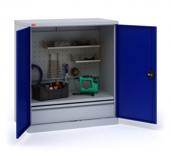 Инструментальный шкаф ИП-1-0,5/2 односекционный предназначен для хранения инструментов, слесарных приспособлений и других изделий на предприятиях, в мастерских, гаражах, подсобных помещениях. Представляет собой сборно-разборную металлическую конструкцию, собираемую при помощью саморезов.