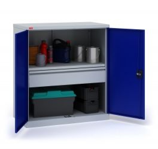 В комплектацию шкафа ИП-1-0,5/3 входит: корпус шкафа, двери, 1 съемная полка ИП-1 (ВхШхГ) 917х438 мм, 1 выдвижной ящик ИП-1 (ВхШхГ) 161х847х455 мм. Шаг перфорации для установки полок 83 мм. Нагрузка на полку - 60 кг, на ящик - 30 кг. Шкаф оборудован ключевым замок повышенной секретности и ригельной системой запирания.