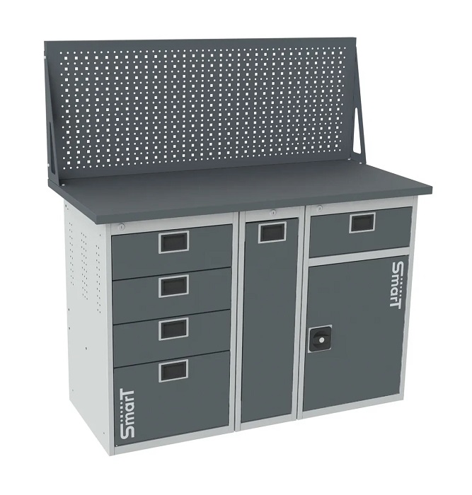 Дополнительно на верстак можно установить: перфорированный экран SMART 1280 мм, комплект освещения SMART, аксессуары на экран SMART, возможна установка системы мастер ключ.