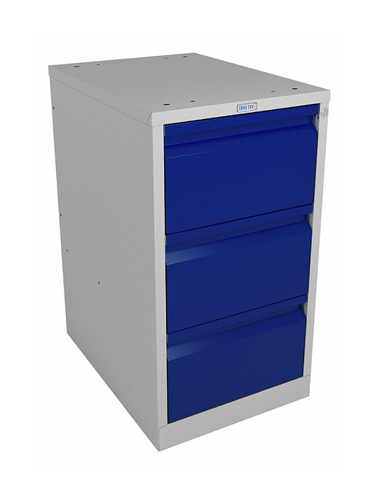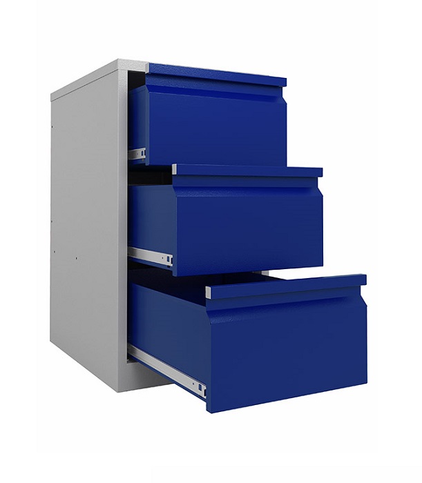 Тумба Profi WD-3 предназначена для хранения вещей, инструментов и оснастки в производственных помещениях, гаражах, мастерских. Изготовлена из высококачественного металла. Комплектуется 3 выдвижными ящиками с телескопическими направляющими. Полезные размеры ящиков (ВхШхГ): 235х380х600 мм. Ящики открываются на все длину, что позволяет использовать 100 % пространства. Тумба Profi WD-3 закрывается центральным ключевым замком Практик (1000 комбинаций). Выдерживает максимальную нагрузку на ящик 30 кг на тумбу до 500 кг. Цвет корпус- серый Ral 7038, лицевая панель ящика - синий Ral 5002