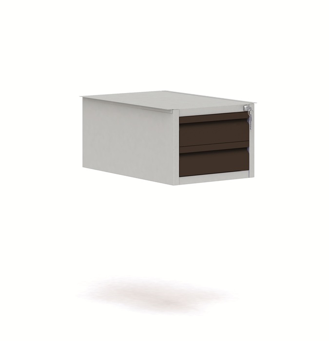 Подвесная тумба-ящик Т-ВПЭ черная предназначена для хранения вещей, инструментов и оснастки в производственных помещениях. гаражах, мастерских. Используется для установки на верстак ВП-Э или как самостоятельный элемент металлической мебели. Состоит из двух выдвижных ящиков, запирающихся на центральный замок. Максимальная грузоподъемность полки тумбы-ящика - 30 кг. Цвет: корпус - серый Ral 7035, ящики - черный муар Ral 7021. Поставляется в собранном виде