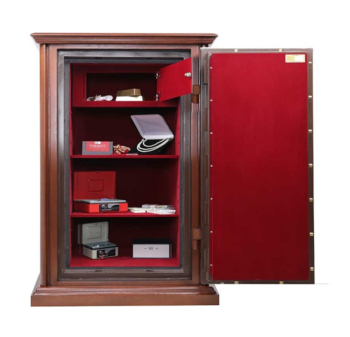 Valberg Гарант Евро 120 Т EL Д (дуб) предназначен для сохранности документов и ценностей при пожаре и взломе. Рекомендованная сумма хранения денег до 6,5 млн. руб. для физических лиц и до 2 млн. руб. для юридических лиц. Устойчивость к взлому по ГОСТ Р 50862-2017: класс 2 (ГОСТ Р). Огнестойкость: ГОСТ Р 57384-2017: класс 60Б (ГОСТ Р). При заливке двери и корпуса сейфа используется запатентованная система армирования огнестойкого бетона. Толщина защитного слоя двери - 33 мм, общая толщина двери - 105 мм. Толщина боковых стен -77 мм, задней стенки - 51 мм. В сейф установлена: 3х сторонняя ригельная система запирания; защита замка и ригелей от высверливания и выбивания; система блокировки ригельного механизма при выбивании замка; тепловой замок, усиленный огнестойким уплотнителем. Сейф Valberg Гарант Евро 120 Т EL Д (дуб) закрывается электронным кодовым замком PS610/E036 (под заказ возможно установить - ключевой замок KABA MAUER; биометрический кодовый замка PS610FD/E36FD). Предусмотрена возможность анкерного крепления к полу (анкерный болт в комплекте). Внешняя отделка выполнена из натурального дерева, внутренняя отделка из бархата. Покрытие ручек: матовый хром или золото. Цвет: корпус - №11-А, внутренняя отделка - С-1059. Возможны другие варианты окрашивания.